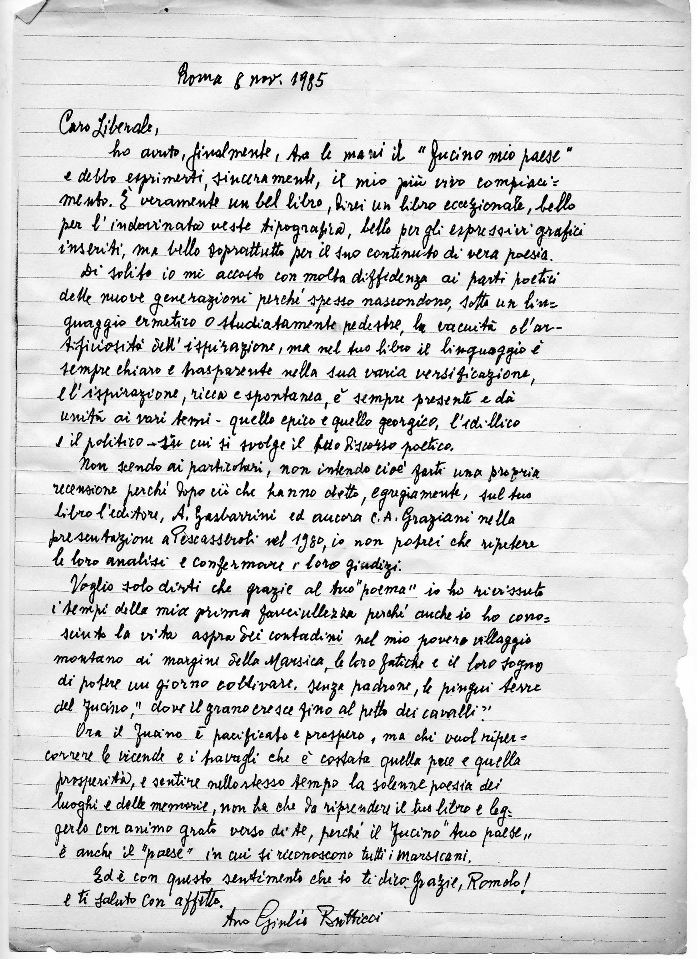 Lettera a Romolo Liberale